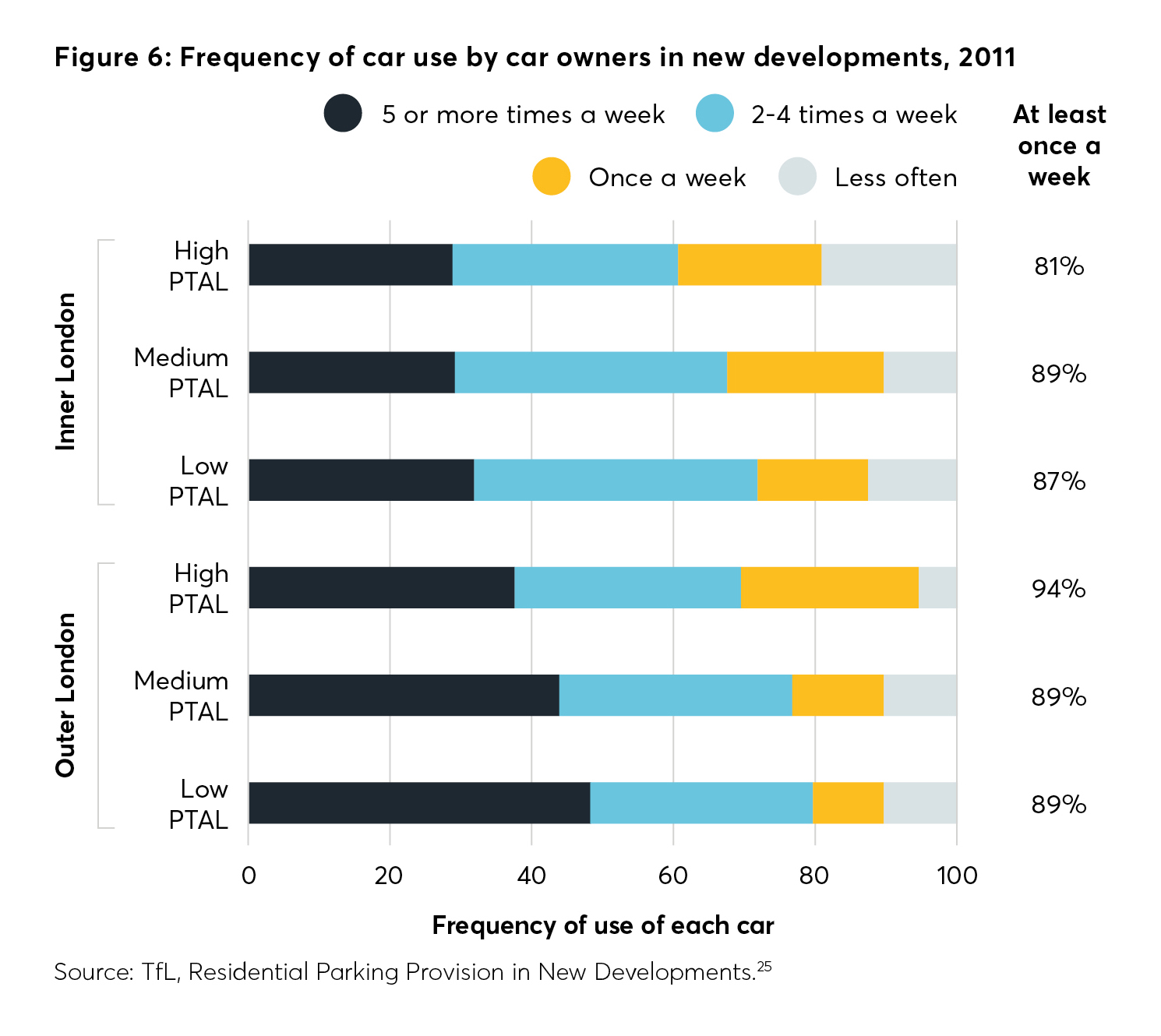 And they’re not alone. According to research by Transport for London, car parking is more likely to be found in new developments than in existing stock. Unsurprisingly, the mantra of “if you build it, they will come” holds true, and residents of new developments are more likely to own a car and use a car than the general London population.