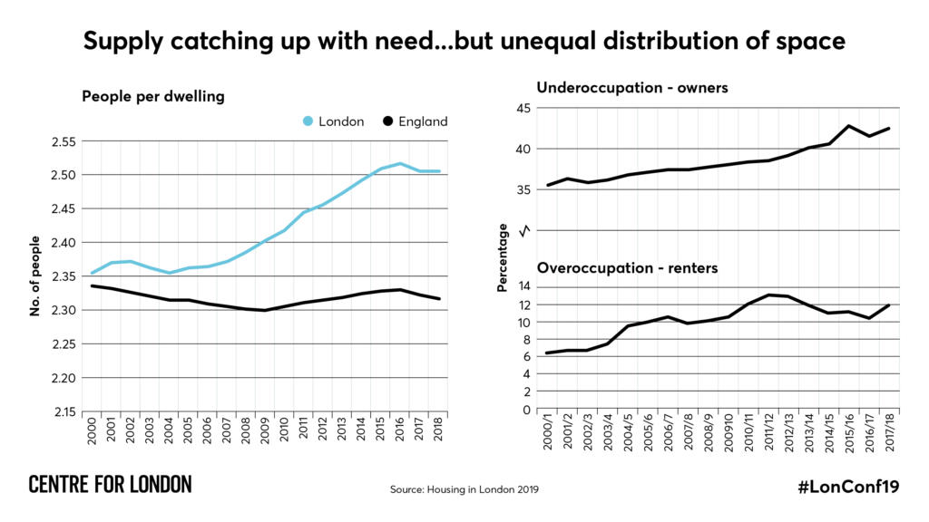 But the easing of the housing gap masks growing inequalities in the allocation of space. More and more owner-occupiers have surplus rooms, while overcrowding in private rented accommodation, which now accounts for more than a quarter of London households, has almost doubled since 2000.