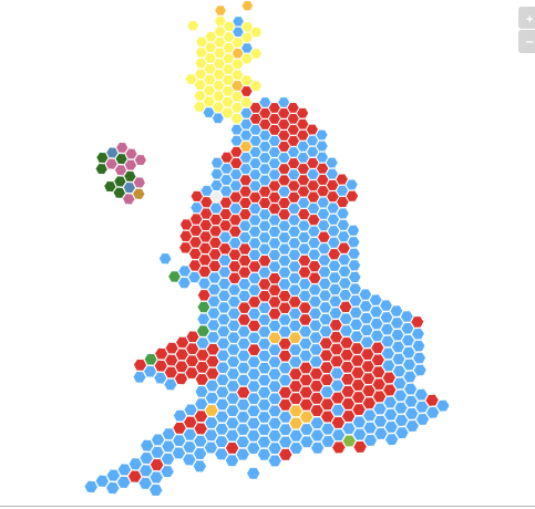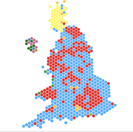 I have written before about the way that London, which once voted quite like the rest of the country, has come to diverge from it. A quick look at the electoral map shows you that remains true.