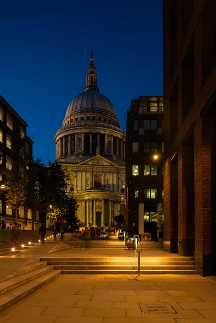 As part of the City Lighting Strategy, a number of locations have been identified to deliver fundamental change to the look and feel. For example in Peter’s Hill, the scale of the lighting and the overall number of fittings were reduced, introducing lighting at ground level in handrails as well as warmer, lower lighting levels, to create a calmer and more welcoming space.