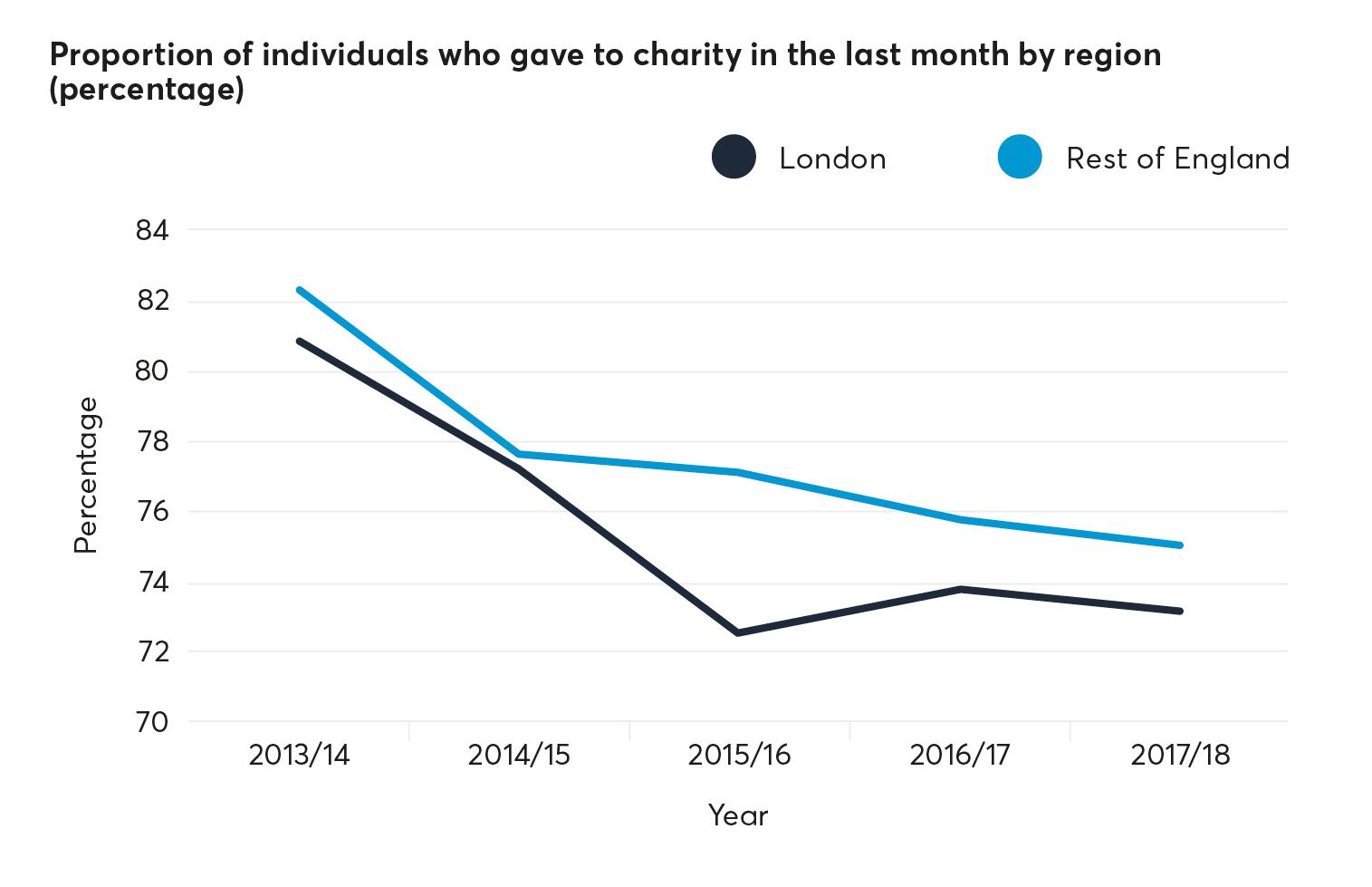 • Fewer Londoners are regularly giving their time and money to charity than they were five years ago.