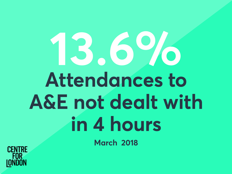 weather in March. 13.6 per cent of attendances to A&E were not dealt with in four hours, which was the second highest figure since 2011.