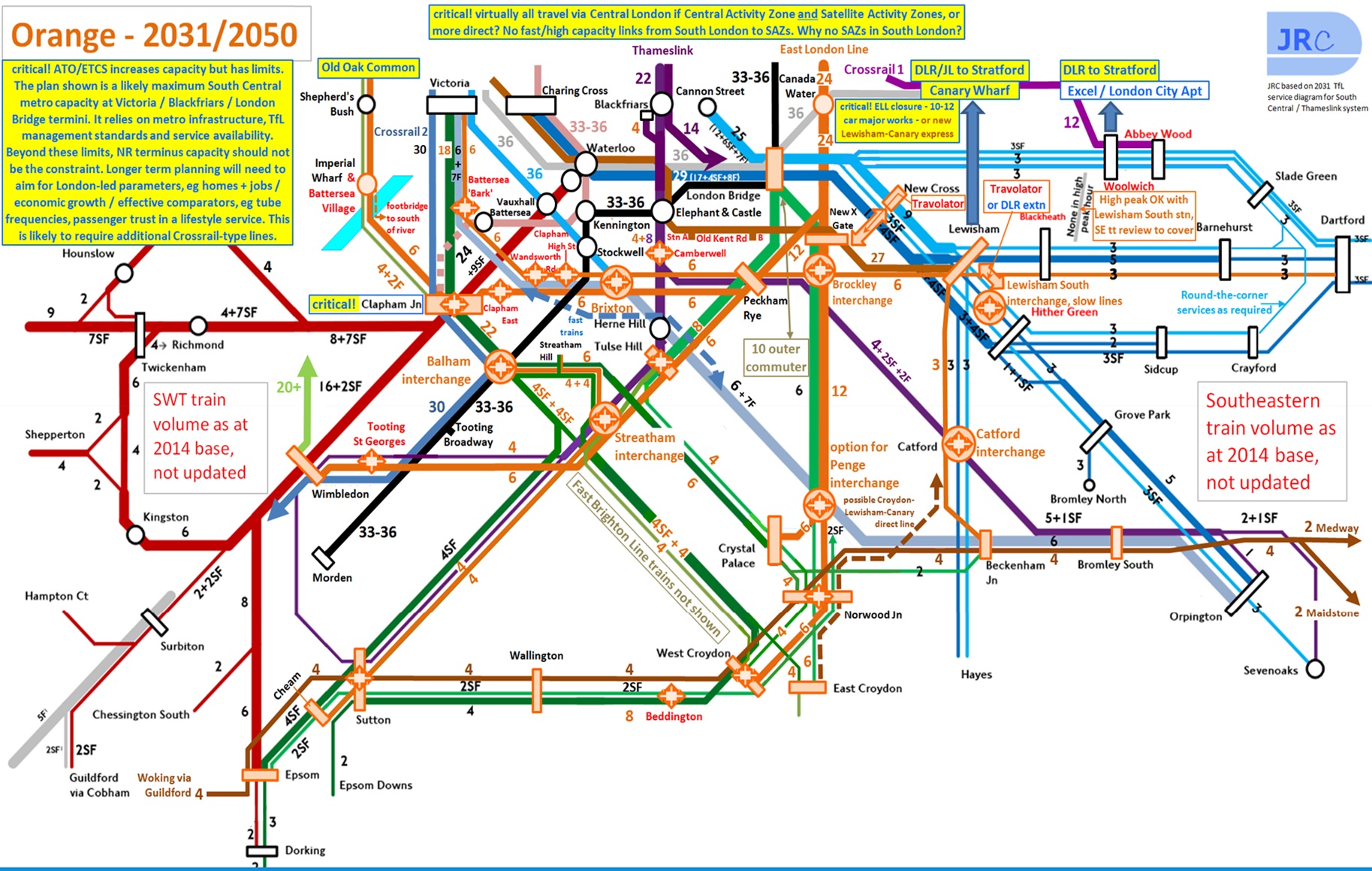 By 2031, the Tube network will have reached capacity. Crossrail will be running at capacity from the first day it opens in 2018. Meanwhile, demand for rail services in south London will increase 100 per cent by 2050.