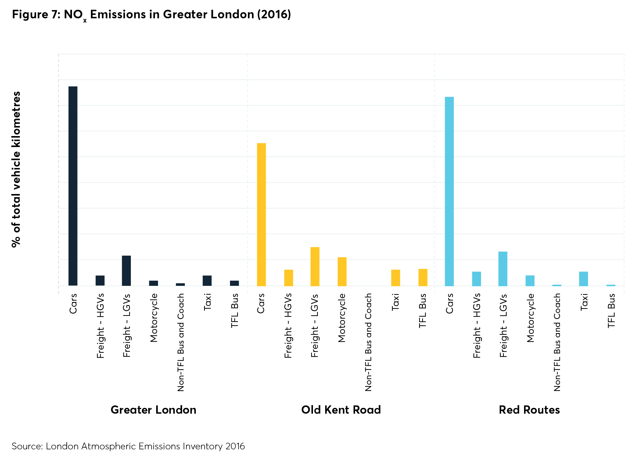 NOX concentrations in the Old Kent Road area by vehicle type