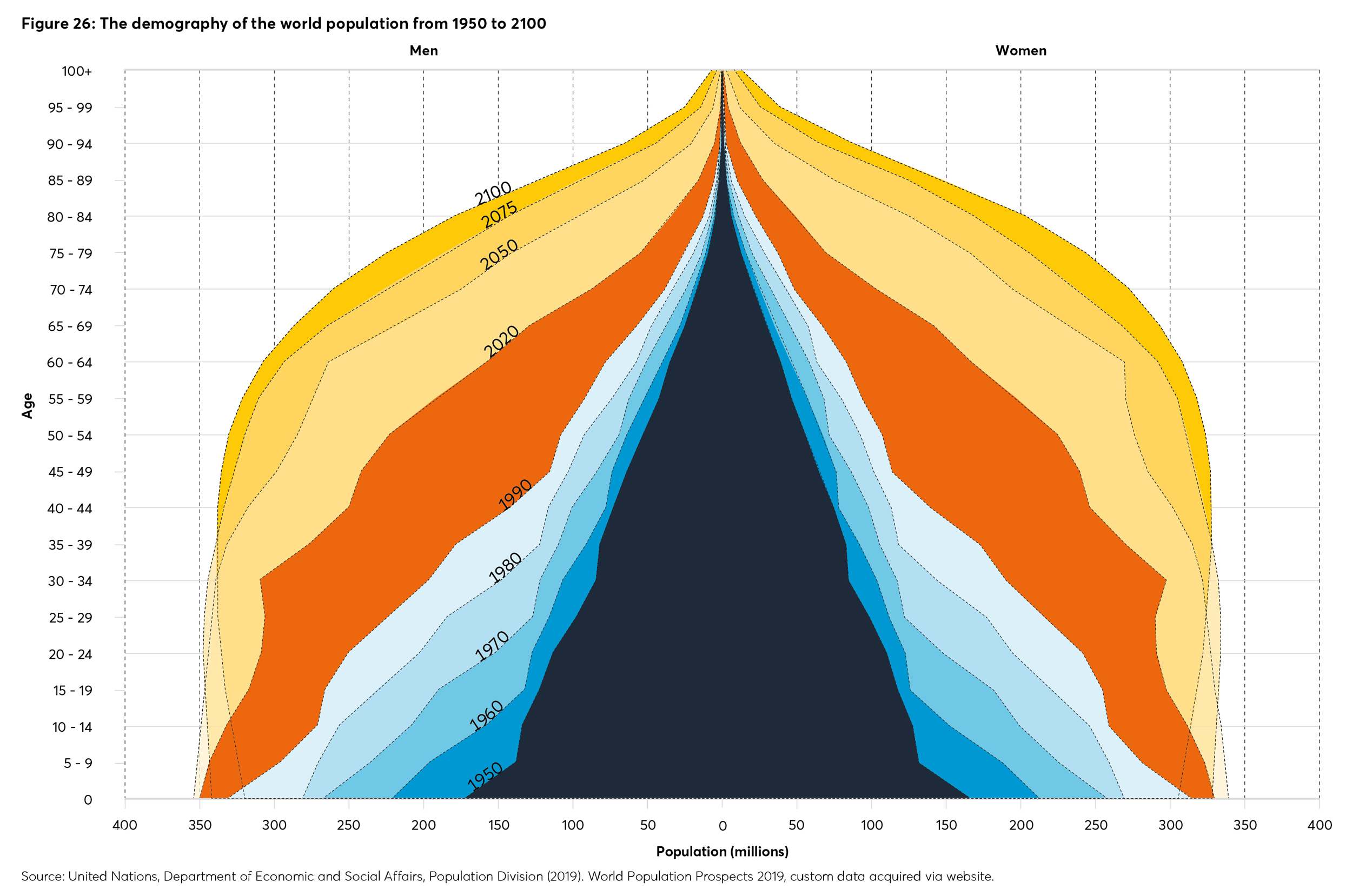 Rising prosperity, advances in disease prevention and treatment, and other improvements in healthcare have led to life expectancies rising across the world (though with some notable exceptions in sub-Saharan Africa in the decade from 1988, 4 and more recently in the USA). 5 Combine these two broad trends, and the causes of acceleration in ageing across entire populations are clear. Though there is much to celebrate here for individuals, families and communities, the wider implications give pause for thought.