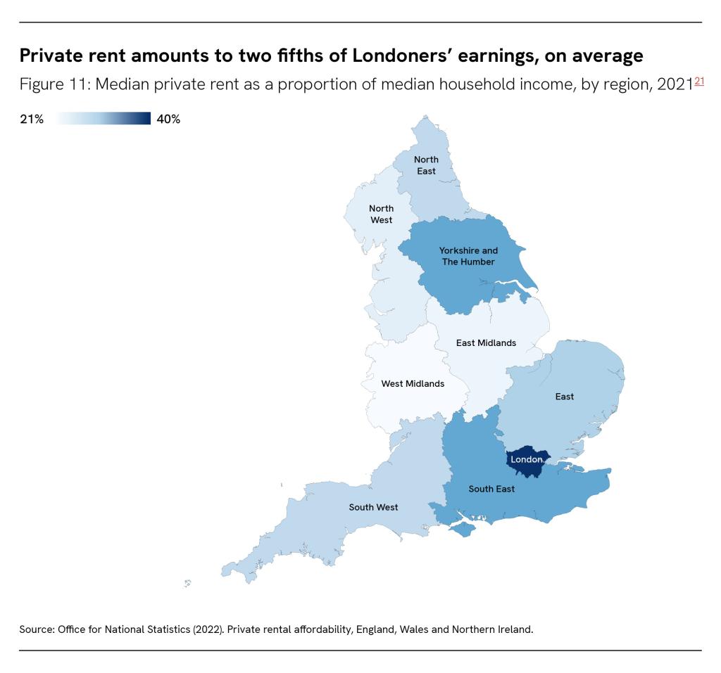 Private rent amounts to two fifths of Londoners’ earnings, on average