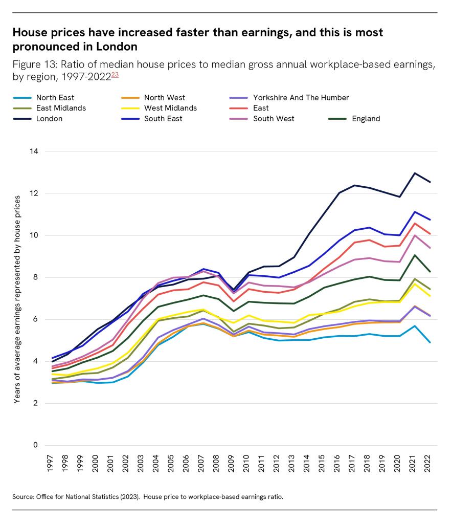 House prices have increased faster than earnings, and this is most pronounced in London