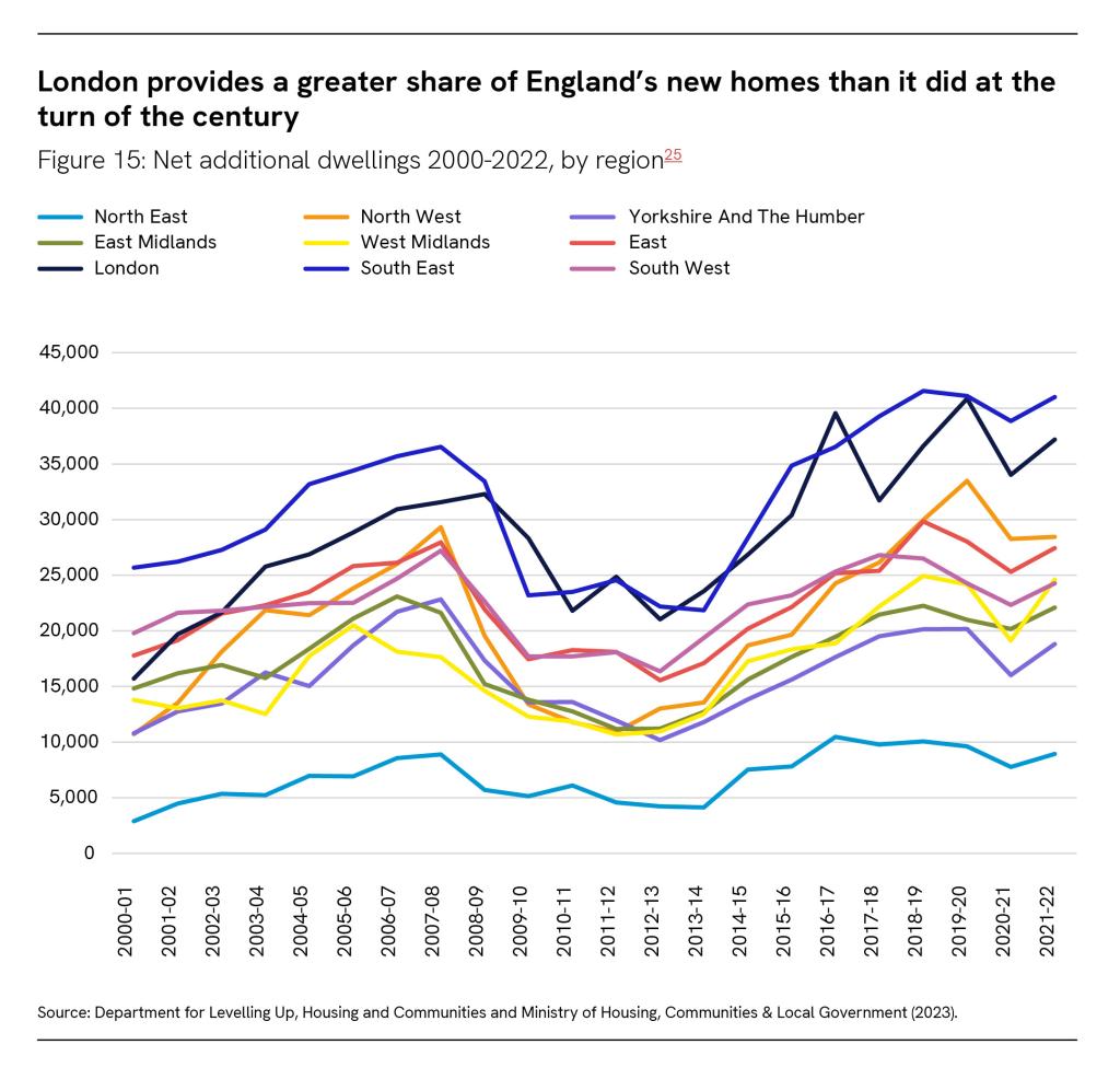 London provides a greater share of England’s new homes than it did at the turn of the century