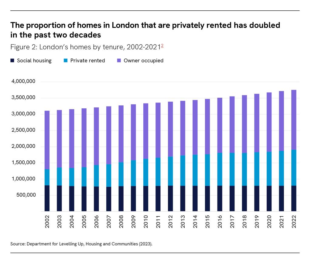 The proportion of homes in London that are privately rented has doubled in the past two decades