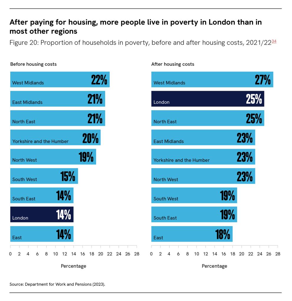 After paying for housing, more people live in poverty in London than in most other regions