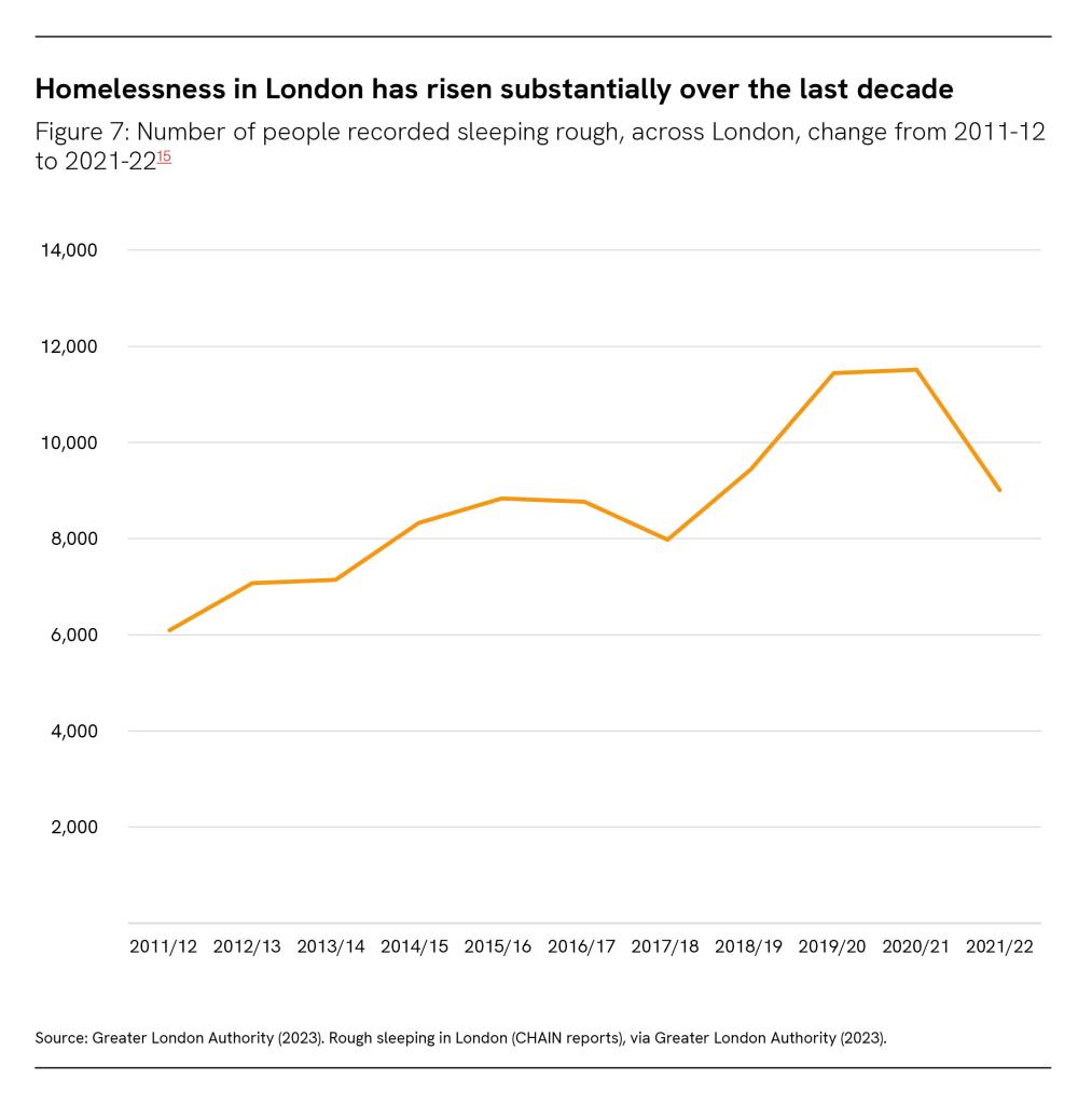Homelessness in London has risen substantially over the last decade