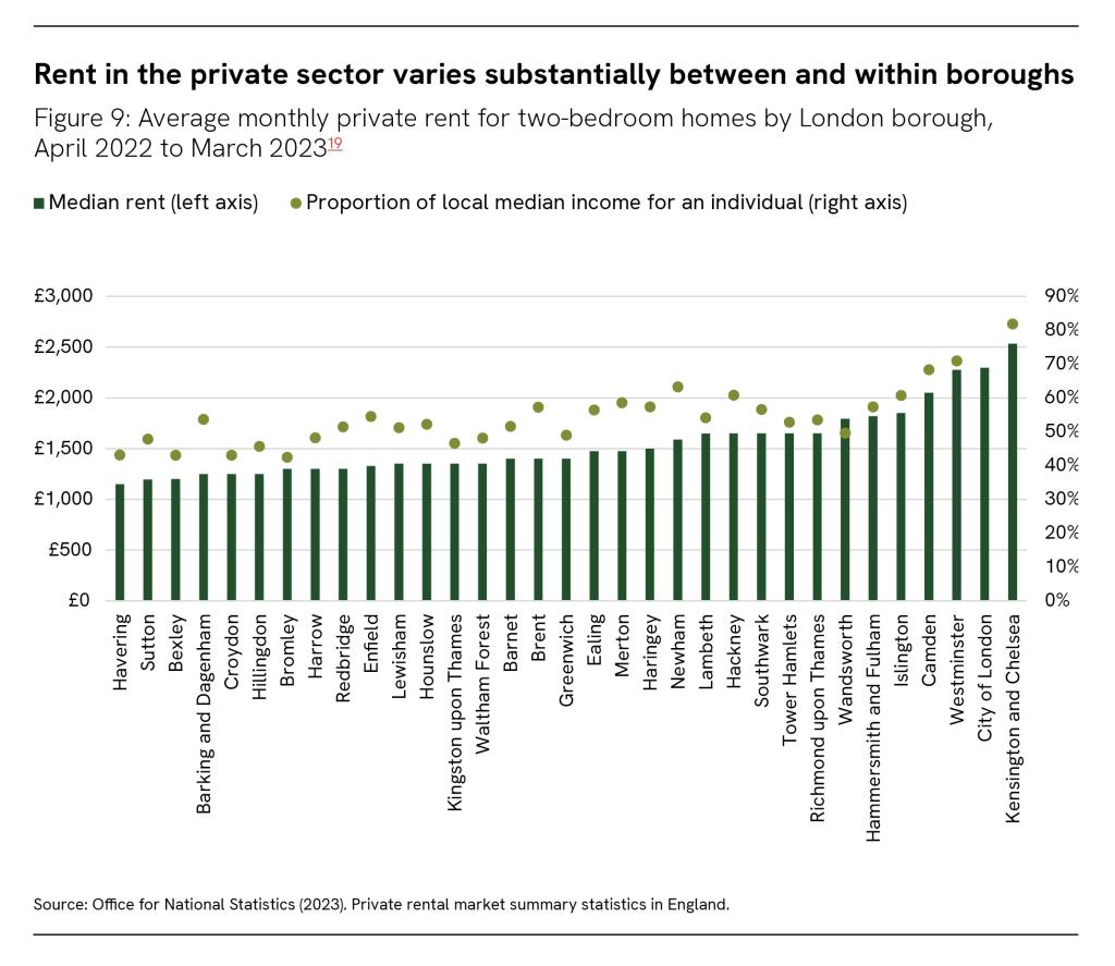 Rent in the private sector varies substantially between and within boroughs
