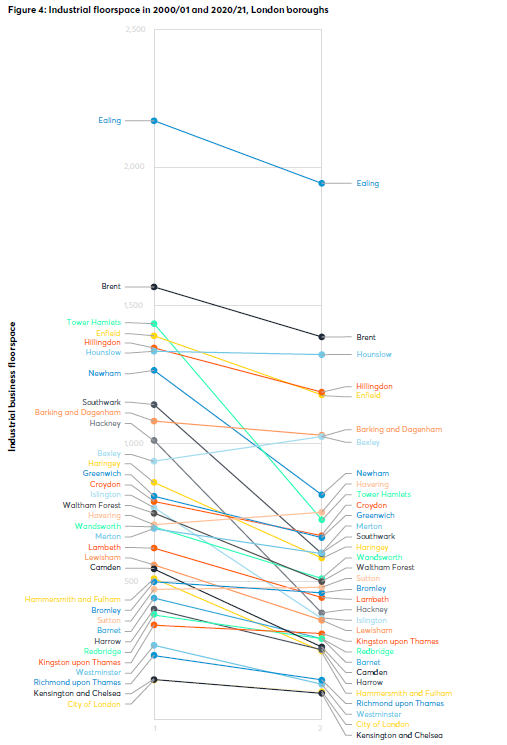 Other UK cities have also released industrial floorspace in the last two decades – though the release was greater in London. There has been a small increase in industrial floorspace in rest of the Wider South East but that does not compensate London’s loss in floorspace nor in value, as London needs industrial land within its boundaries to function.