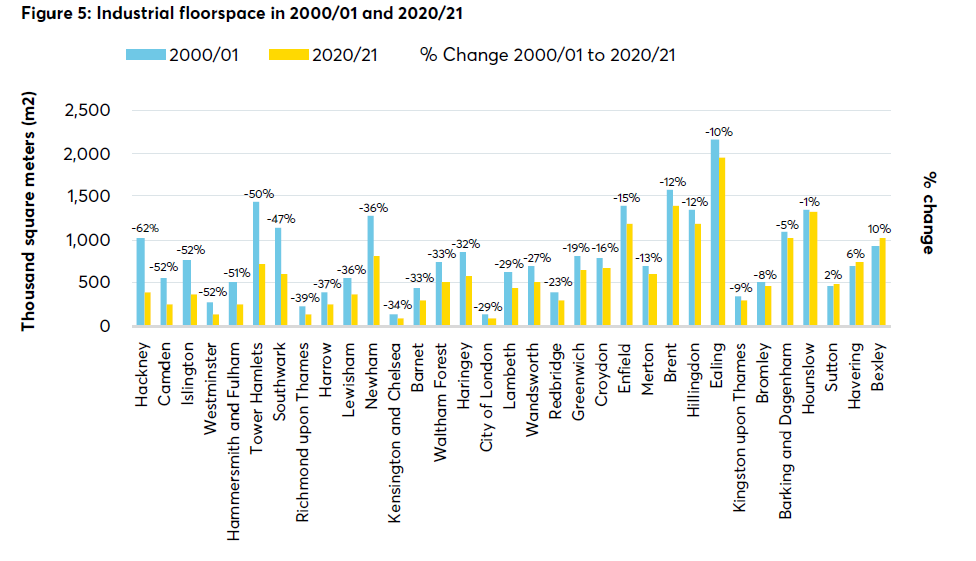 Source: VOA (2021). Non-Domestic Rates, Table FS4.1: Industrial sector – total floorspace by administrative area, data to 31 March 2021.60