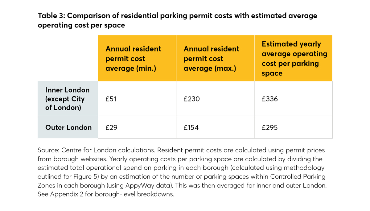 It is important to clarify that these estimated costs per parking space are likely to be conservative, as the number of parking spaces may include free (e.g. disabled) bays and other kerbside uses.