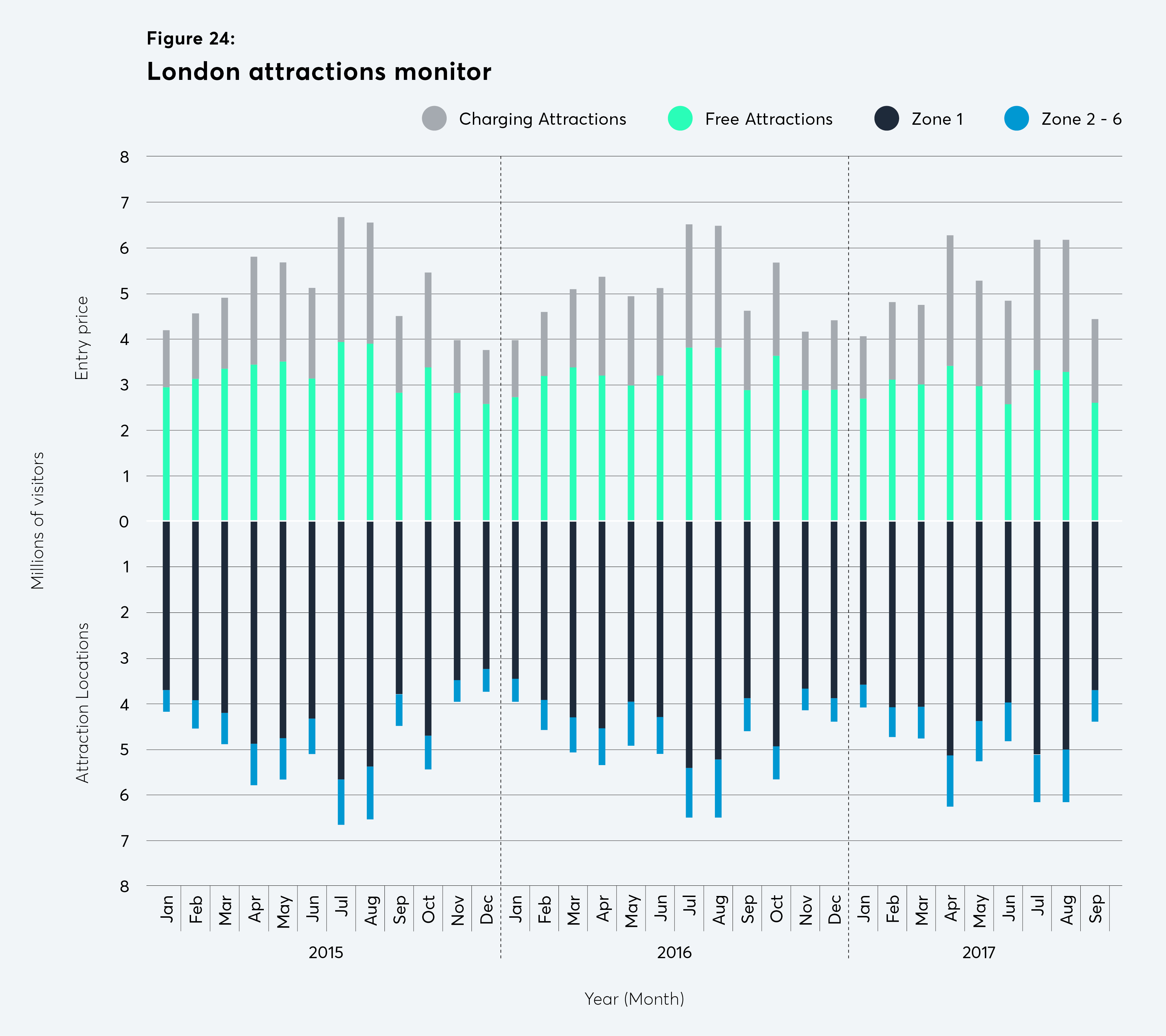 Visitor numbers to over 60 of London’s top attractions – including museums, galleries and stadiums – fell by nearly 5 per cent in the quarter to September when compared to the previous year. The sharpest fall was in the summer months, when international visitor numbers were also down, and is perhaps linked to the impact of terror attacks in London and Manchester.