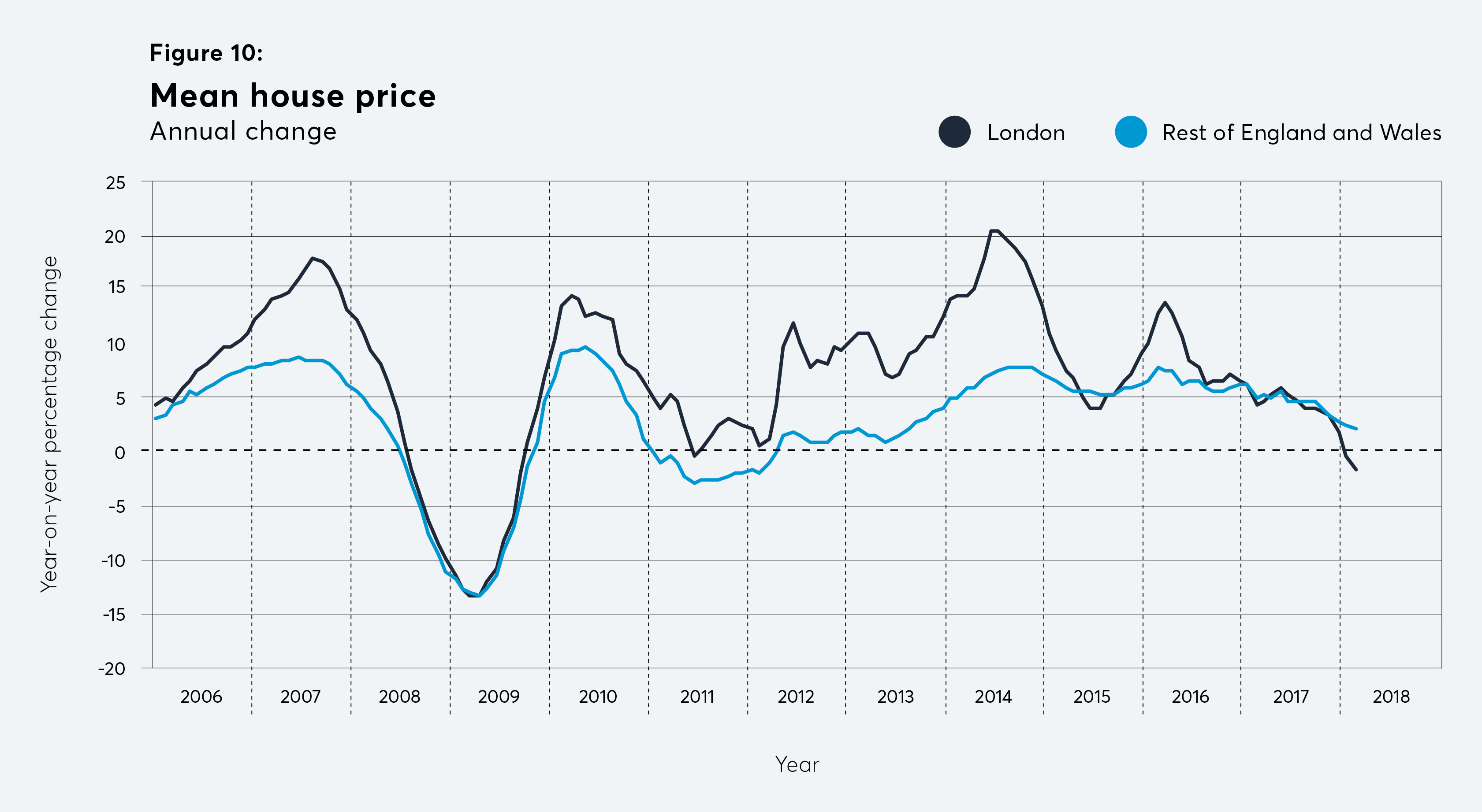 London’s housing market continues to cool. Based on price-paid figures provided by Acadata, house prices in London fell by 1.5 per cent in the year to February, their second successive decline (they fell 0.4 per cent in the year to January), reflecting the effects of wider economic trends and specific policy interventions. Surveys continue to point to falling demand for London housing, which may have a wider impact on household spending. While the effects of stamp duty changes have largely been absorbed into the market, there appears to be a largely negative future outlook for the capital’s prices.