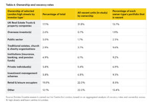 Source: Estates Gazette research carried out for Centre for London, based on an aggregated analysis of vacancy rates and ownership across 15 high streets and town centres in London.